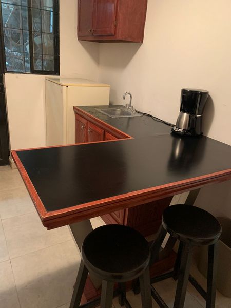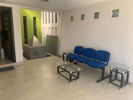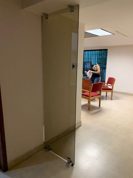 En recepción, con hasta 3 espacios y una oficina privada atrás, 2 más en el pasillo para dos o 3 personas, 2 oficinas privadas ( la oficina principal con baño), capacidasd hasta 12 personas.